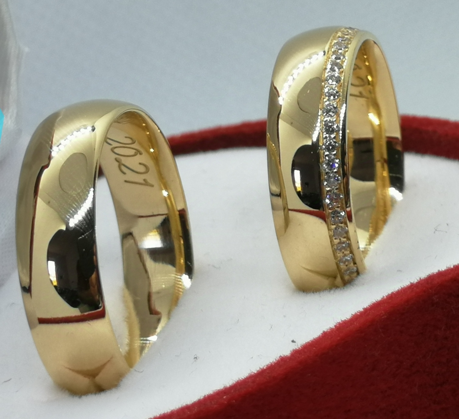 Aliança formato amêndoa, em Ouro de 19,2k, com 6mm de