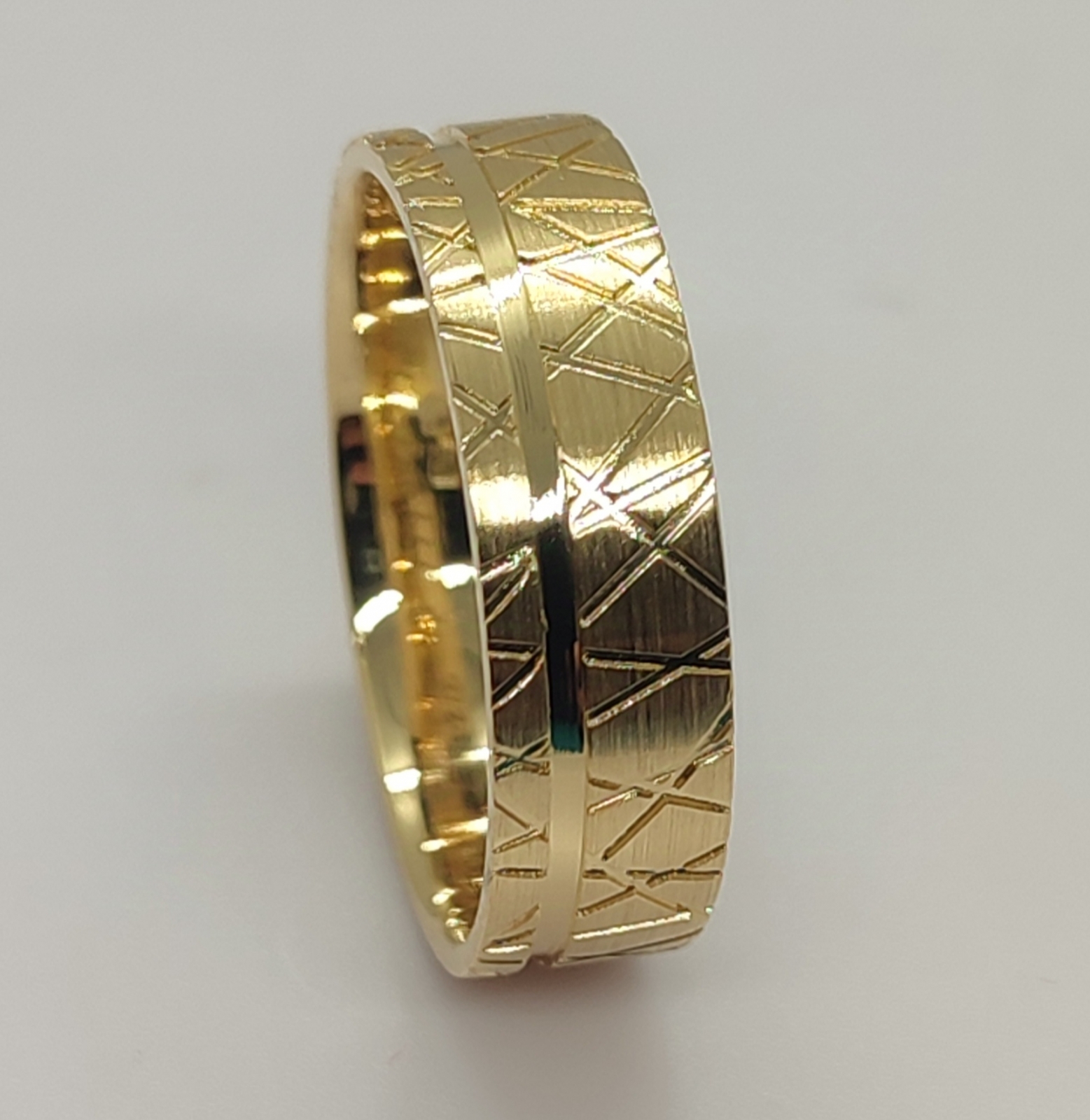 Aliança de Homem em ouro amarelo, com friso brilhante.