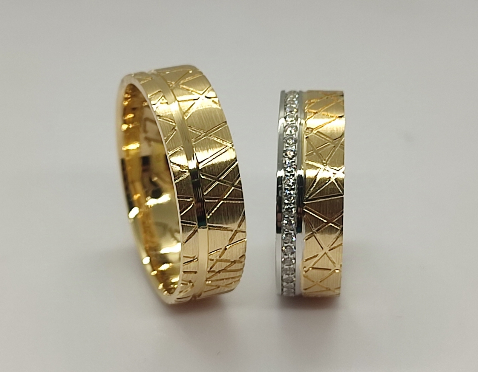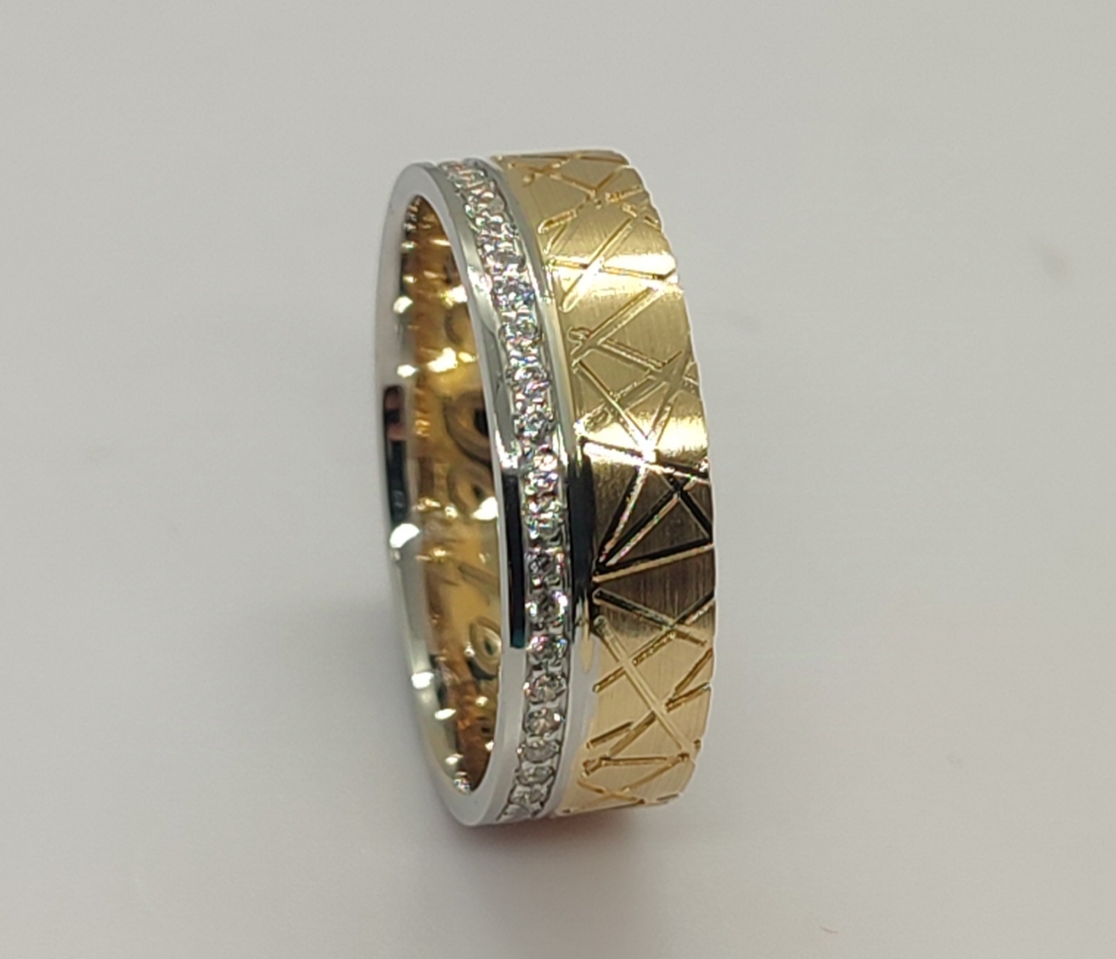 Aliança de Senhora em ouro bicolor, com 1 fila de zircônias.