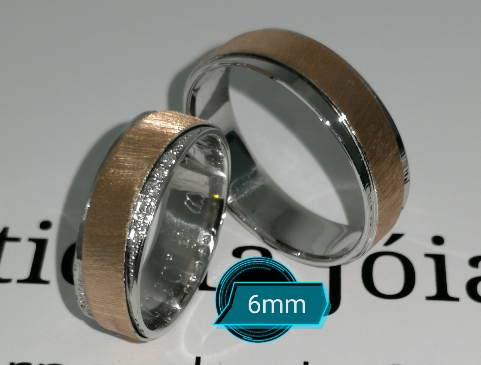 Aliança formato plano, em ouro bicolor de 19,2k,
