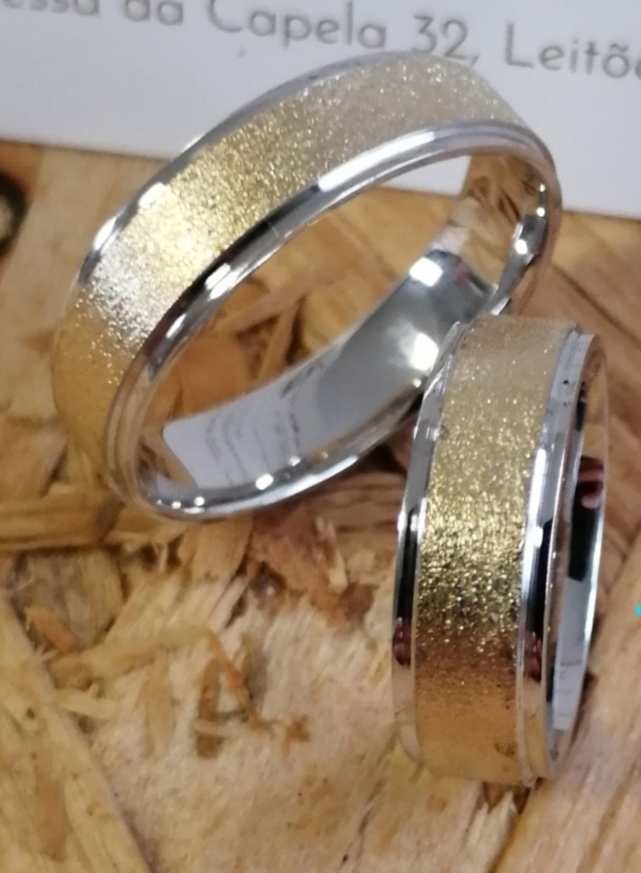 Aliança formato plano, em ouro bicolor de 19,2k,