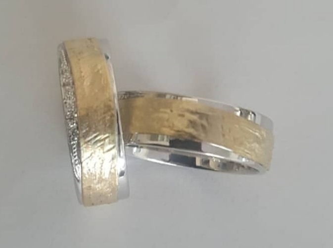 Aliança com fita ondulada.