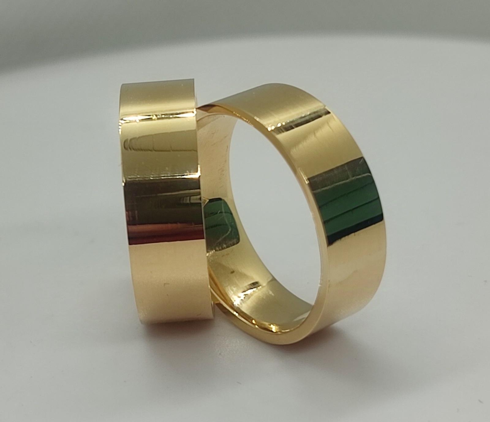 Aliança formato plano, em ouro bicolor de 19,2k,