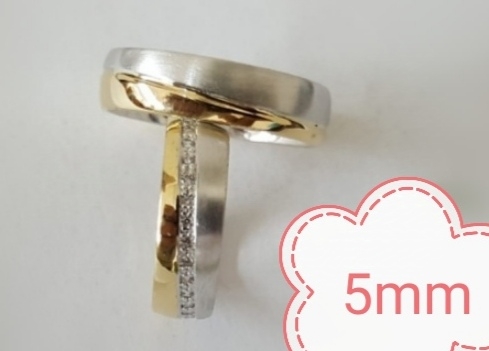 Aliança formato amêndoa, em ouro bicolor de 19,2k,