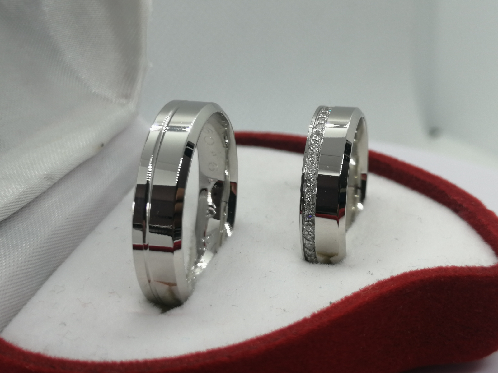 Aliança formato plano, em ouro branco de 19,2k,