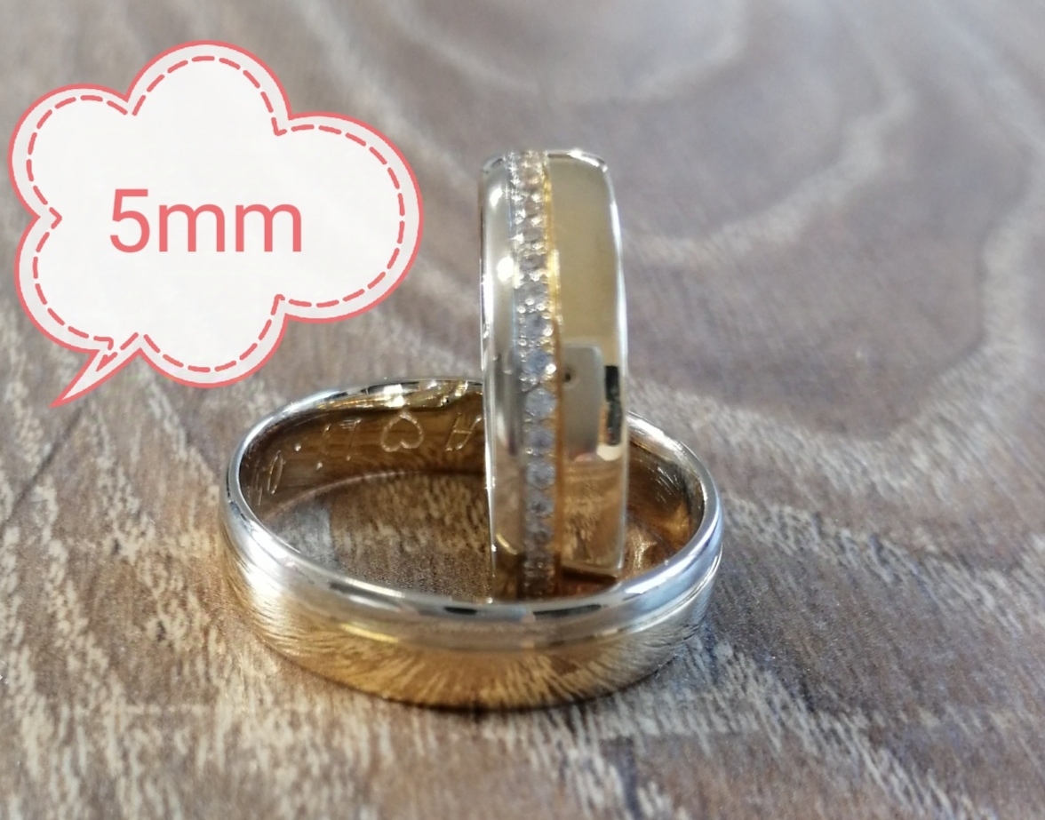 Aliança formato amêndoa, em ouro bicolor de 19,2k,