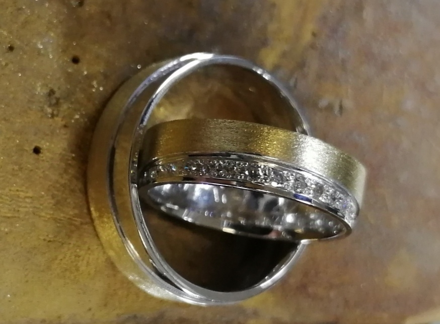 Aliança formato plano, em Ouro bicolor de 19,2k,