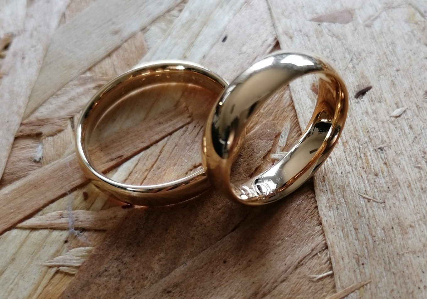 Aliança formato amêndoa, em Ouro de 19,2k, com 5mm de