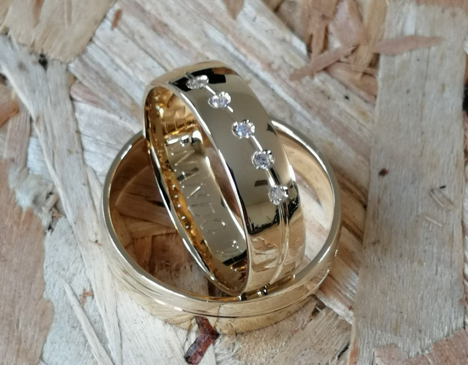 Aliança de Senhora com 5 zircônias.