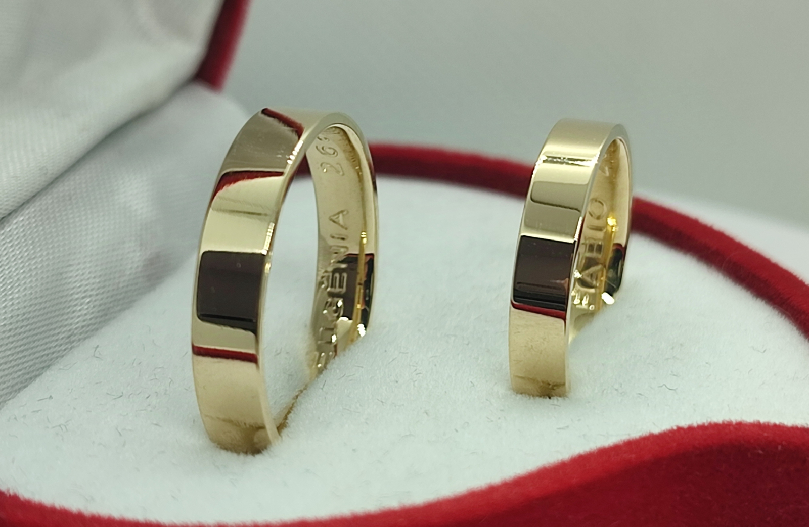 Aliança formato plano, em Ouro de 19,2k, com 4mm de