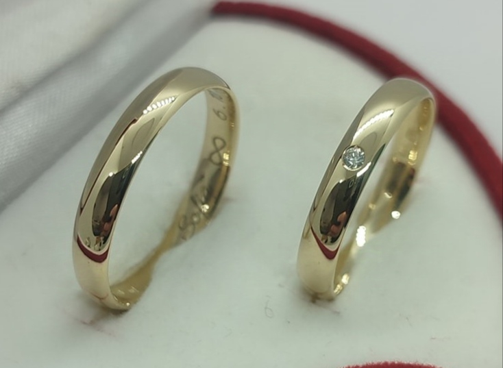 Aliança formato amêndoa, em Ouro de 19,2k, com 3,5mm de