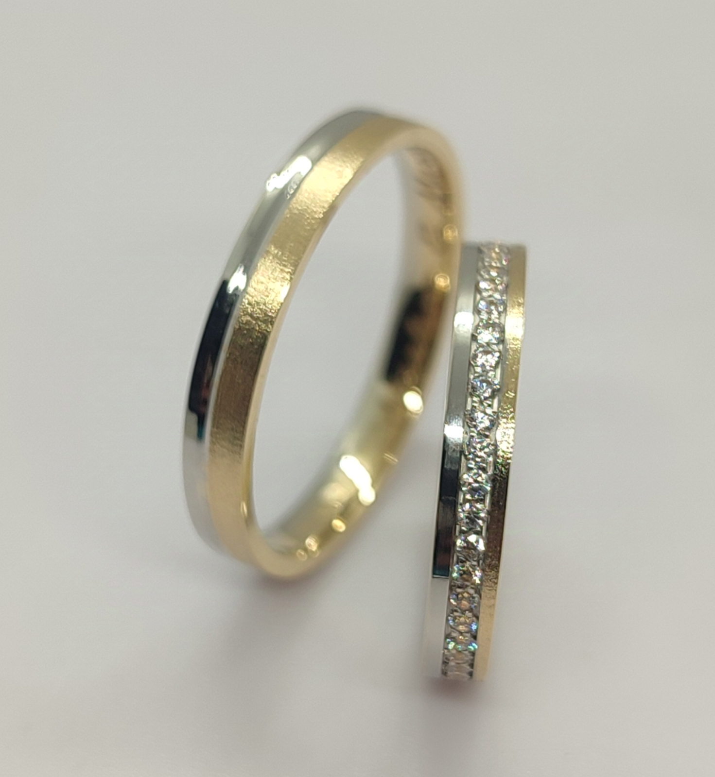 Aliança formato plano, em Ouro bicolor de 19,2k, com 3mm de