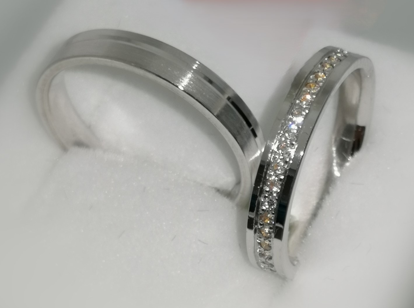 Aliança formato plano, em Ouro Branco de 19,2k, com 3mm de
